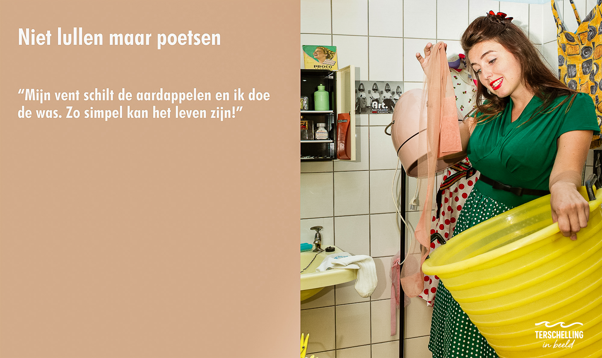Met model Naomie ging ik dit heerlijke avontuur aan. Ik haalde letterlijk de zinken teil uit Brabant en de bikini tikten we op de kop bij een tweedehandswinkel.